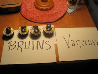 Meg spent hours making Bruins cupcakes and we agreed that each time our team scored, we would eat a cupcake! Well, that lasted for the first 3 goals...we just couldn't force that last goal cupcake down!